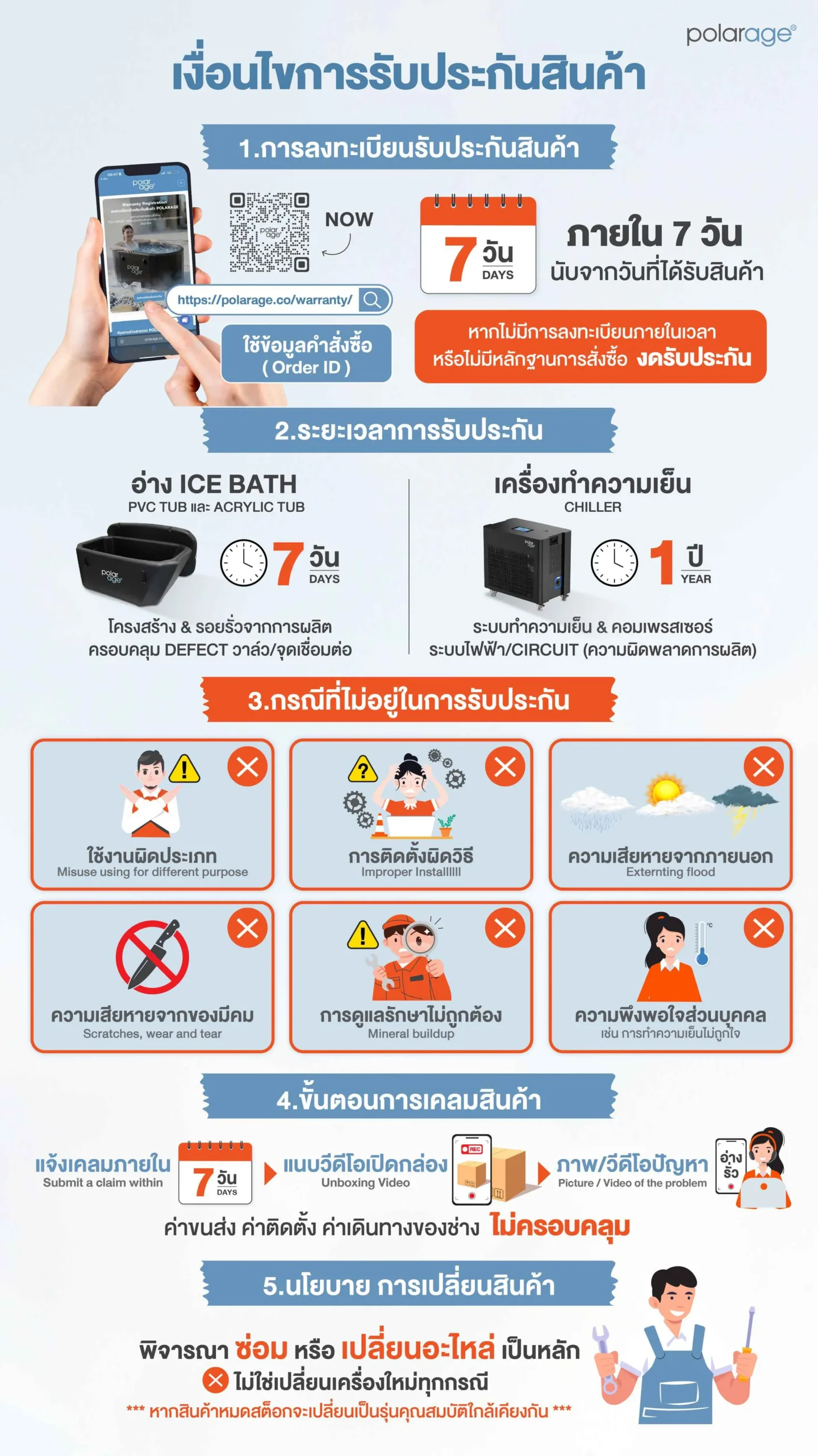 เงื่อนไขการรับประกันสินค้า POLARAGE