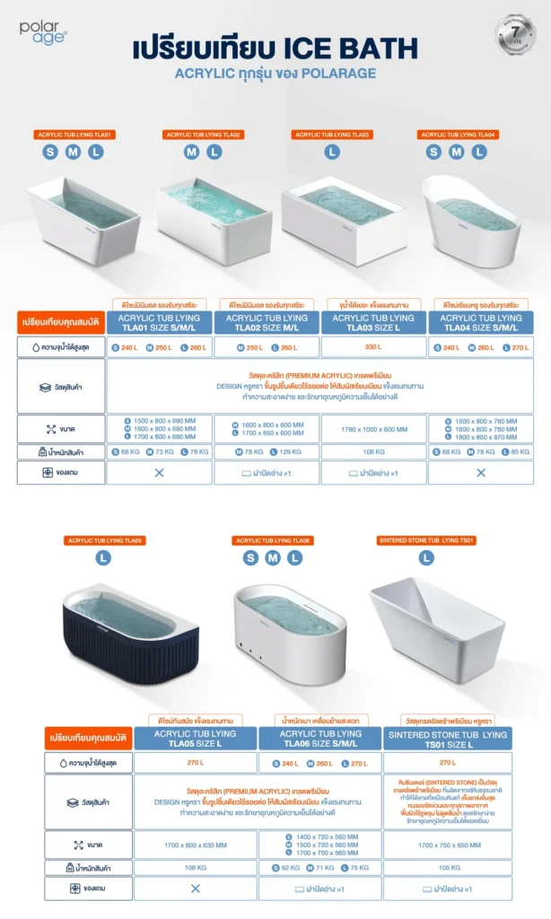 ตารางเปรียบเทียบ Ice Bath Acryllic