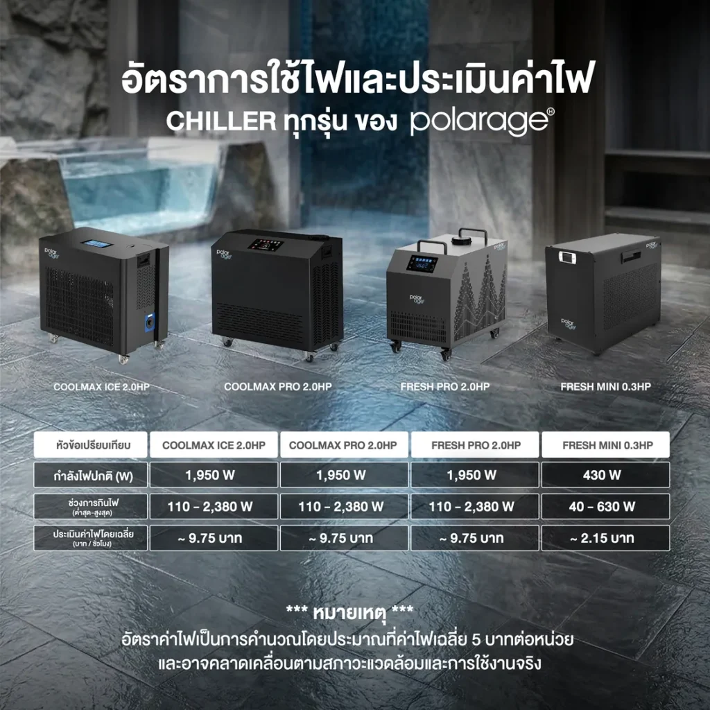 สำหรับรุ่นระดับ Professional เช่น Ice Bath พร้อม Chiller ค่าเช่ารายวันจะอยู่ในระดับที่เหมาะสมกับการใช้งานจริง และสะท้อนต้นทุนระบบควบคุมอุณหภูมิ