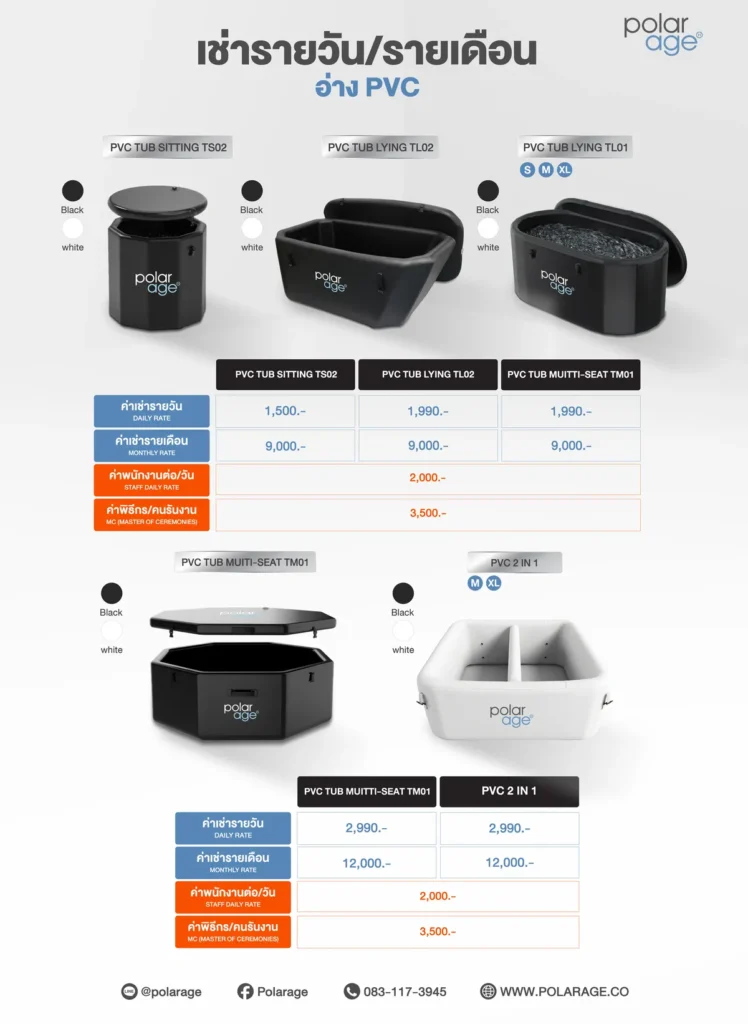 - ราคาเช่าขึ้นอยู่กับรุ่นของ Ice Bath